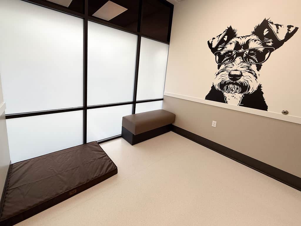 That same year, Dr. Johnson’s 8-yr old Miniature Schnauzer, Jiminy, underwent a routine TPLO surgery for a ligament injury in his knee. Unfortunately, he suffered a number of complications after the procedure that left him in significant pain. This led Dr. Johnson to pursue further education in veterinary pain management, and in 2017 she passed examinations to become a Certified Veterinary Pain Practitioner. In 2019, she became a Certified Canine Rehabilitation Practitioner.